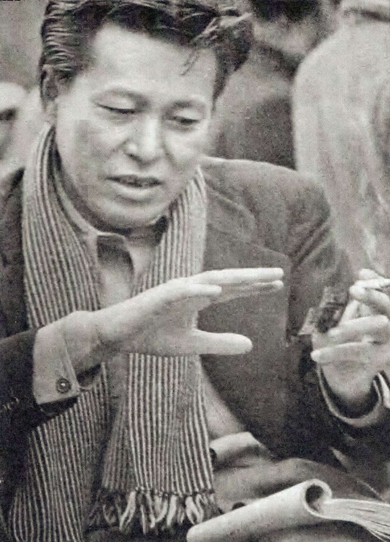ひめゆりの塔でブルーリボン賞を受賞した今井正監督(写真=朝日新聞社出版『アサヒカメラ』4月号(1953)より 撮影=秋山庄太郎/PD-Japan-oldphoto/