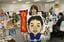 エスワイフード社内、久美さんの自席にて。目の前には重雄さんの写真が飾られている