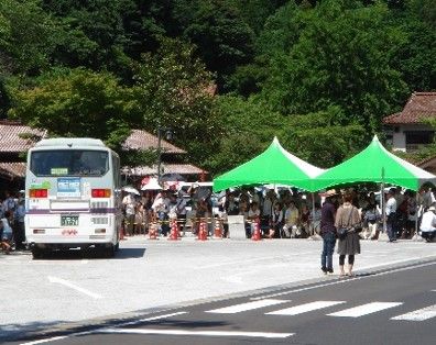 観光バスの乗り場。大吉さんはバスに乗る人たちに、この町のよさを必死で訴えました(『過疎再生 奇跡を起こすまちづくり』(小学館)より)