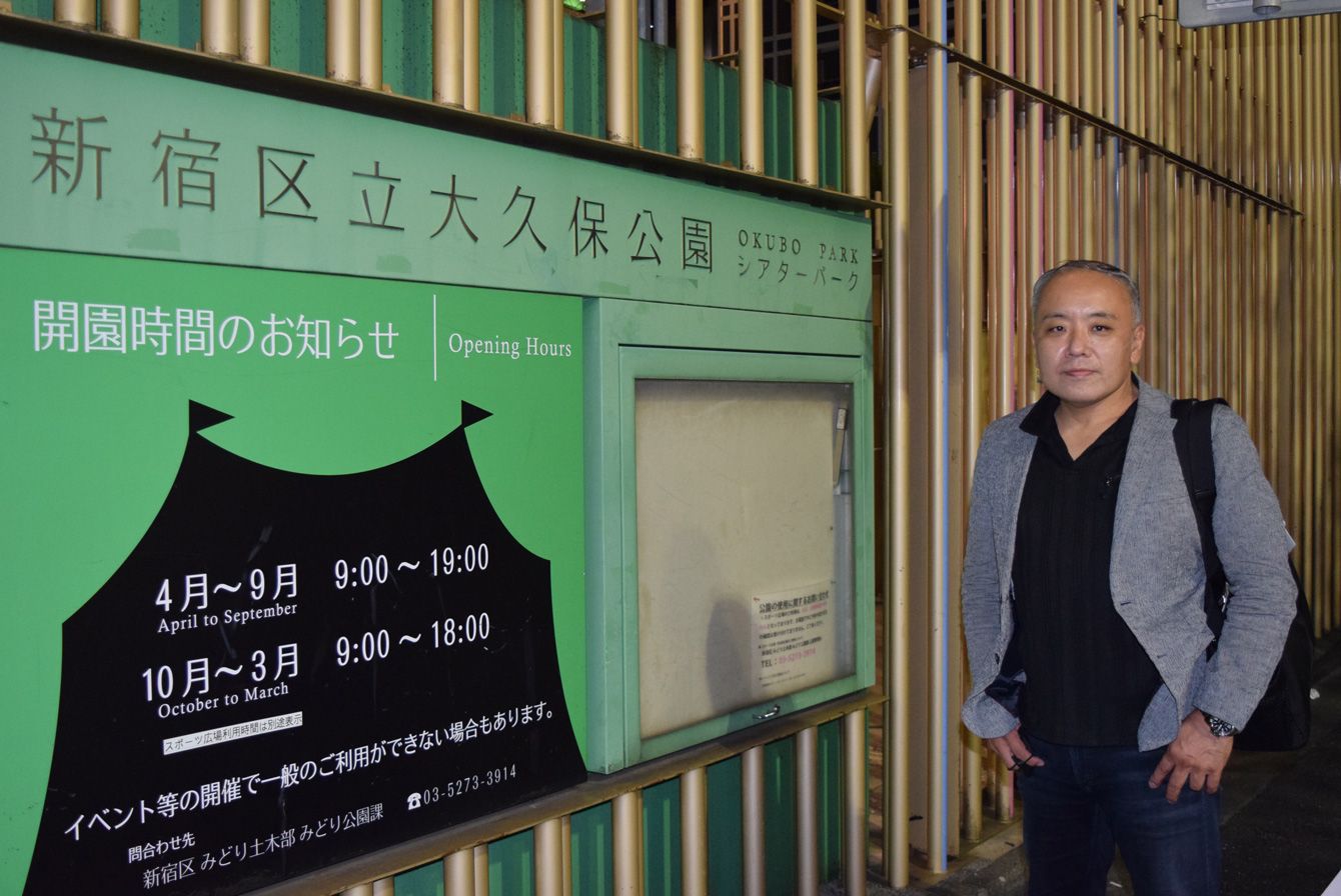 坂本新さんは大久保公園周辺での夜回りを続けている