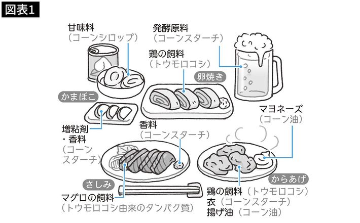 出典=NHKいのちドラマチック「シリーズ主食(1)トウモロコシ 驚異の繁栄」2010年より作成 イラスト=川野郁代