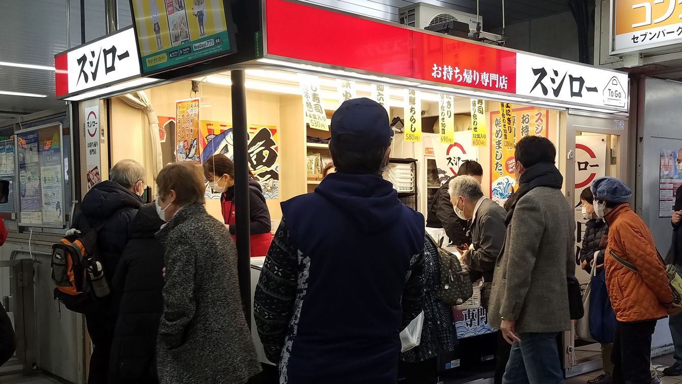 駅構内という至便な立地、店内に調理設備を持たず、既存店の繁忙時以外のリソースを活用する発想――スシローTo Goには、コロナ禍への短期的対応にとどまらない、中長期的な成長戦略が込められている(亀戸店のイメージ画像)