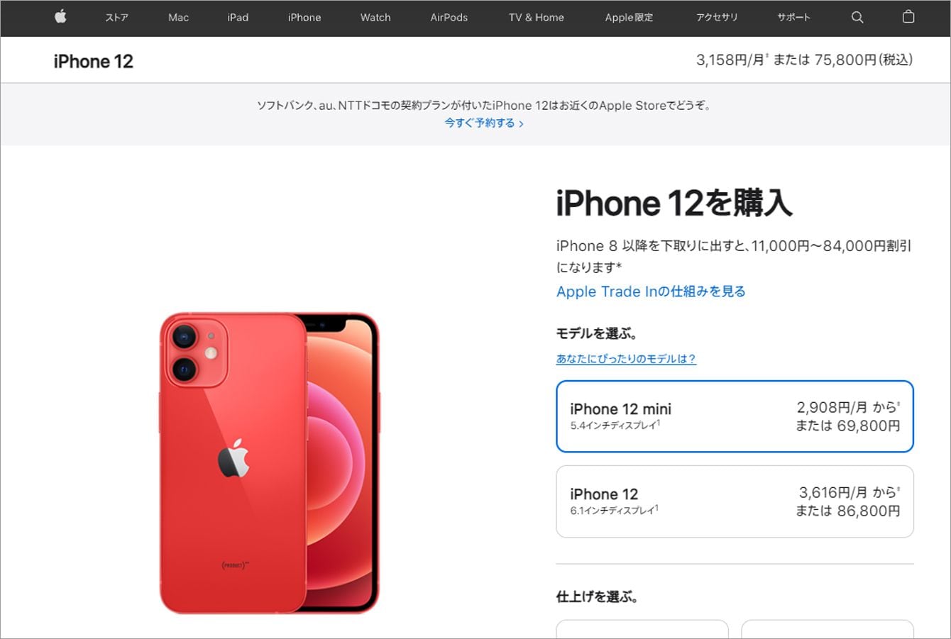 iPhone 12 (PRODUCT)RED(アップルHPより)