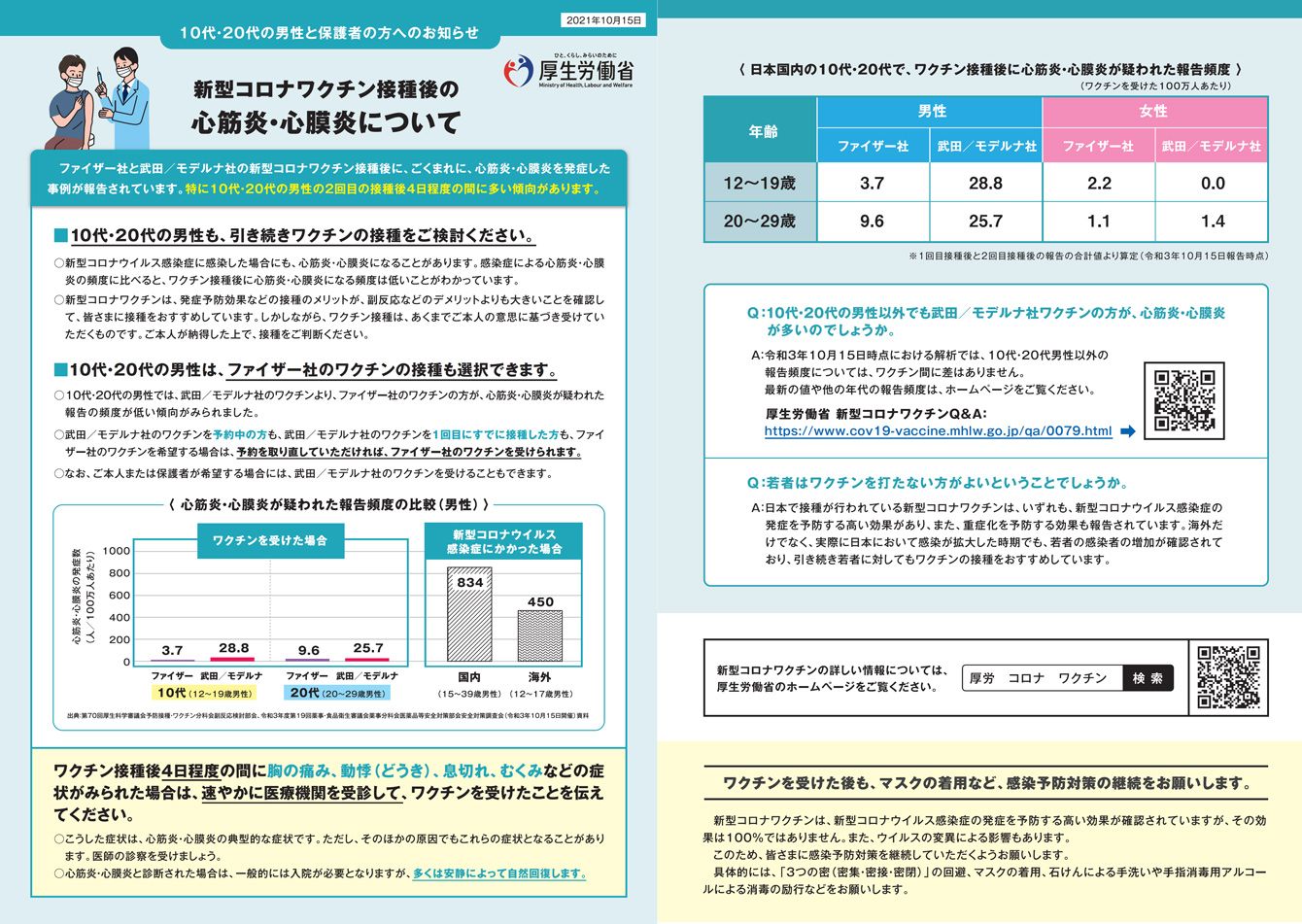 厚生労働省 新型コロナワクチン接種後の心筋炎・心膜炎について