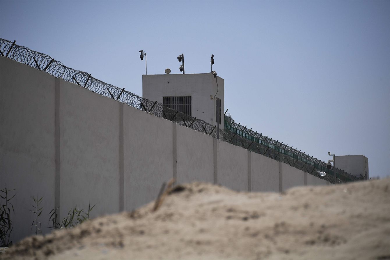 新疆ウイグル再教育キャンプと思われる施設=2019年5月31日