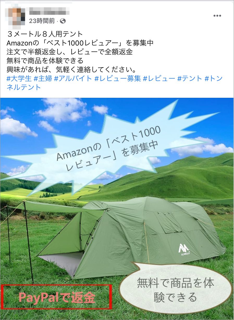 Instagram、Facebookで見つかるステマレビュー募集投稿