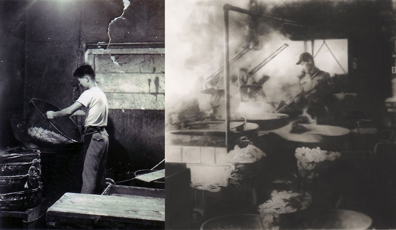 創業初期の湖池屋本社。手前に写っている乳母車の赤ちゃんが現会長