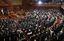 衆議院が解散され、万歳する前議員ら。女性議員の割合は約10%だった=2021年10月14日、国会内