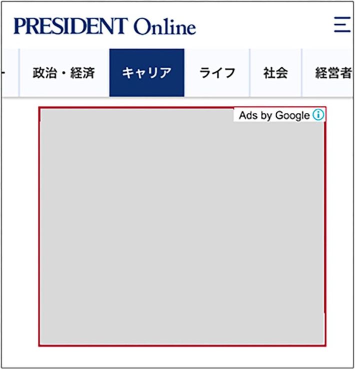 プレジデントオンラインのバナー広告の例。筆者が広告部分を加工した(画像提供=宇田川敦史)
