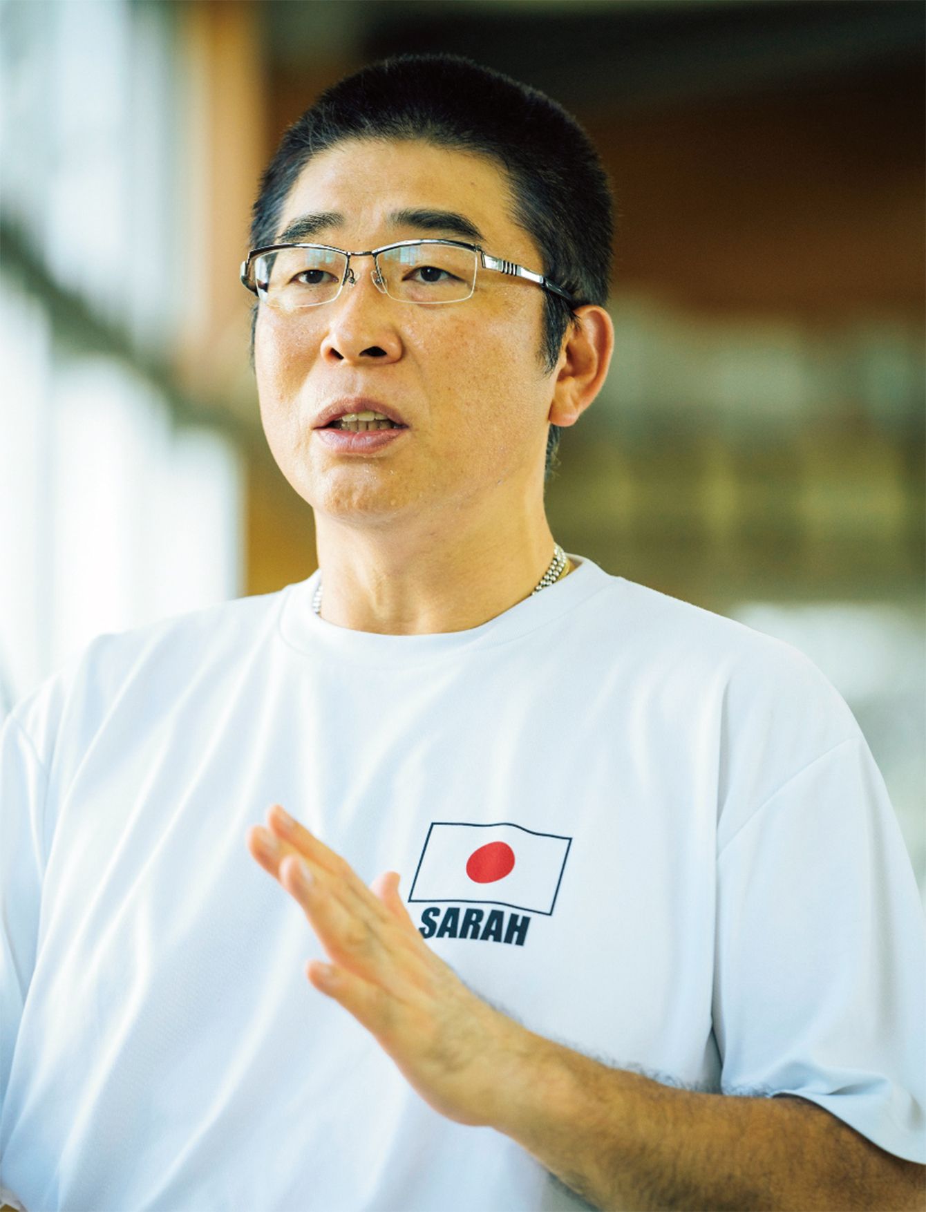 沙羅選手のこと、柔道の練習のこと、医学部進学のことを熱く語る輝哉氏。沙羅という名は、強くなってほしいという願いから、映画「ターミネーター」シリーズのサラ・コナーからとったため表記は「SARAH」。(撮影=市来朋久)