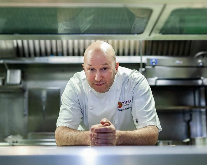 ロンドンにあるNobuグループ全体のパティシエ部門を統括しているレジス・キュルサンさん。彼のお気に入りはマンゴー味の餅アイスだそう。