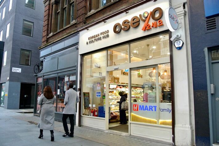 アジア系の簡易スーパーの棚に収まるLittle Moonsの商品。