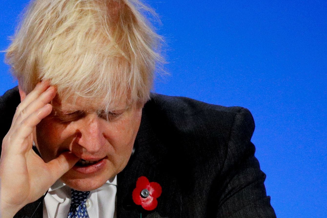 2021年11月2日、国連気候変動枠組み条約第26回締約国会議(COP26)でのジョンソン英首相(イギリス・グラスゴー)