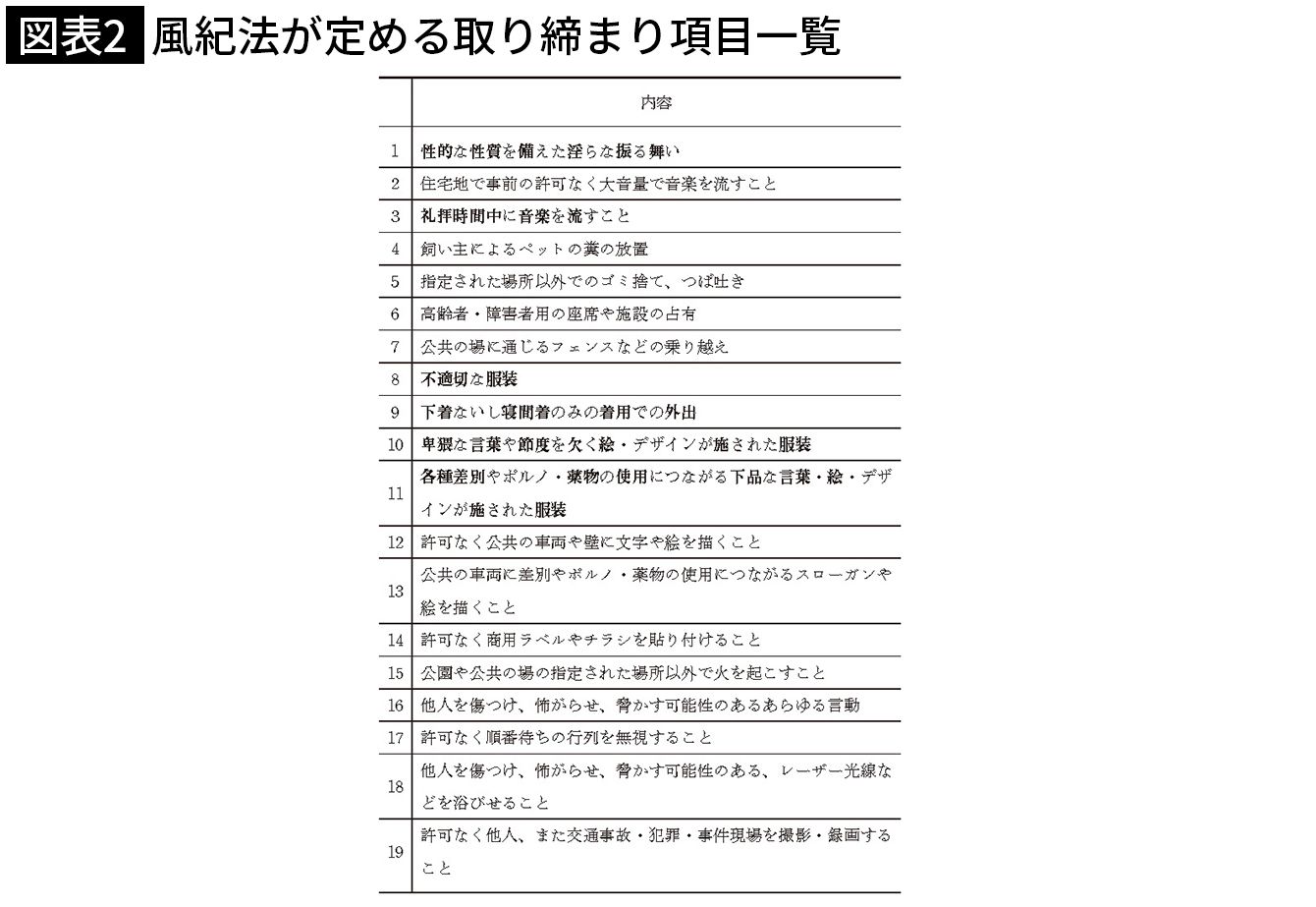 風紀法が定める取り締まり項目一覧