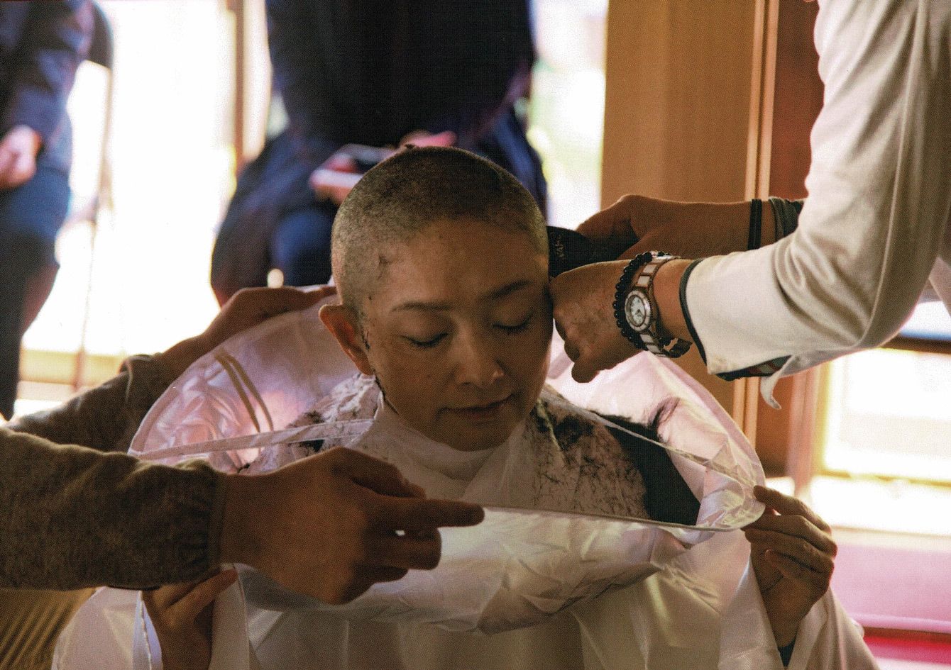 2017年4月、剃髪式で、剃髪中の髙橋美清さん