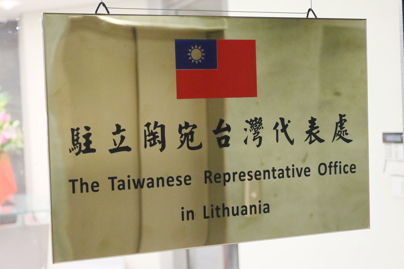 2021年11月18日、台湾が代表機関「駐リトアニア台湾代表処」を設置したと発表。リトアニア・ビリニュスのビルの一室に掲げられた台湾代表処のプレート。