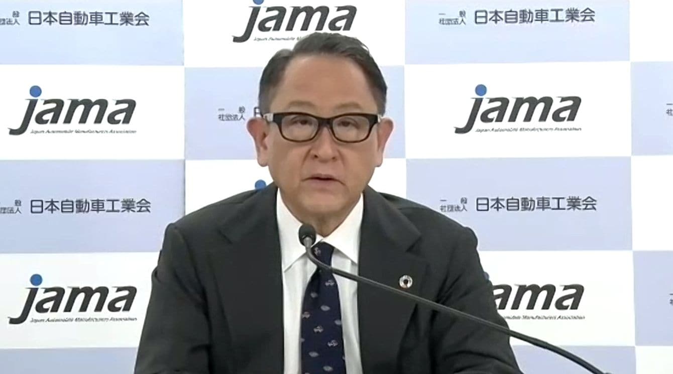 オンラインで記者会見する日本自動車工業会の豊田章男会長(トヨタ自動車社長)=2021年11月18日