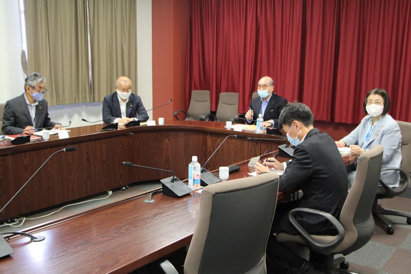 社内会議に参加する中島伸子さん(右端)。2020年8月撮影(写真=井村屋グループ提供)
