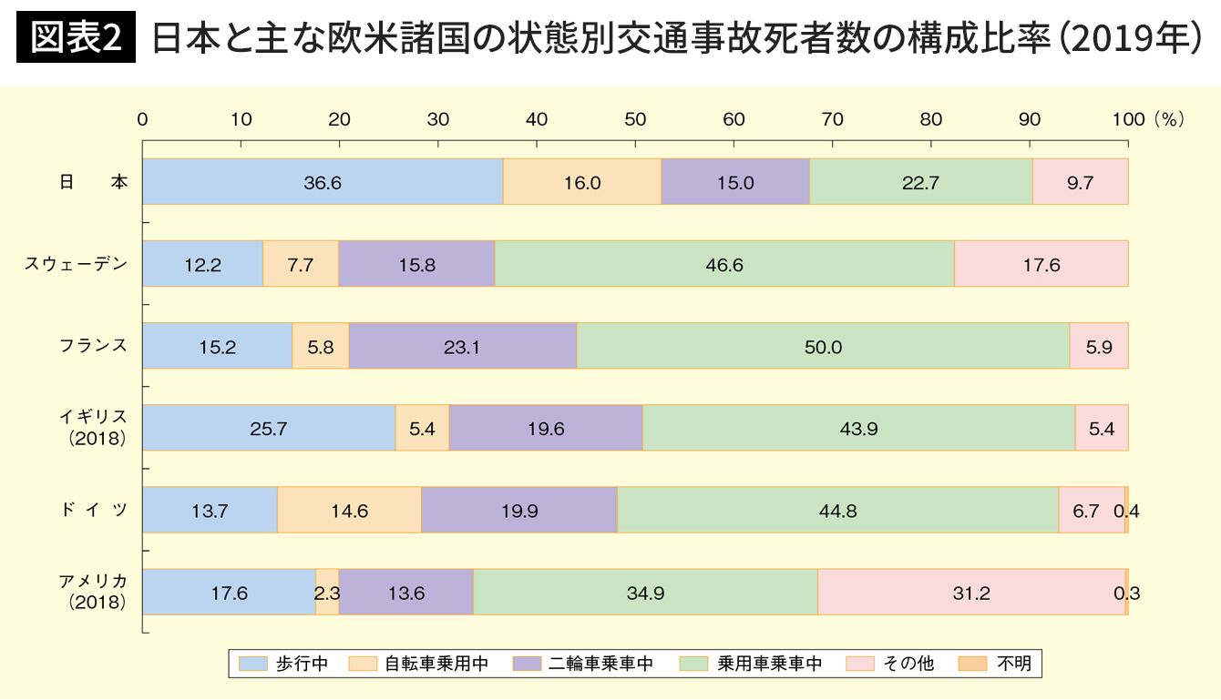 日本では「自転車乗用中」の交通事故死者が16%を占める(令和3年版交通安全白書より)