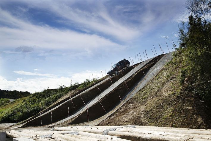 オフロードエリアに設けられた、倒壊した材木を踏み越えるゾーン