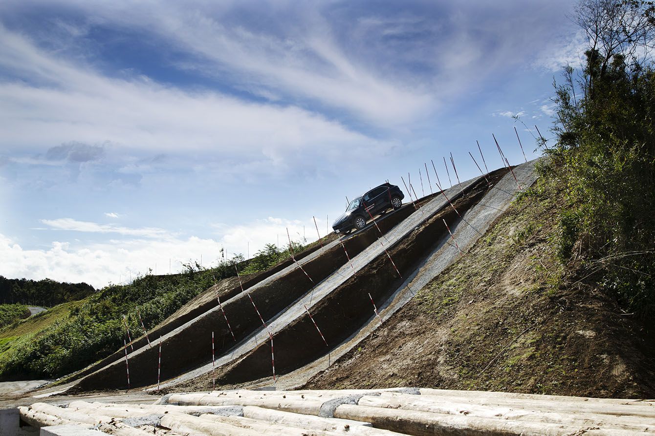 木更津・伊豆島地区の地形とそのままの自然を生かしてコース設計した結果、世界中のPECの中で唯一、立体構造を持つトラックを実現できた