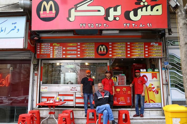 テヘランにあるマシュドナルド。中央にいる男性が店主のハッサン・パドヤブさん。