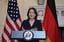 2022年1月5日、米ワシントンでブリンケン米国務長官とともに記者会見するアナレーナ・ベアボック外相
