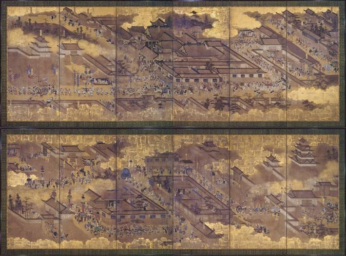 【図版1】「江戸天下祭図屏風」上が右隻。下が左隻(画像=『