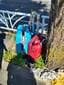 参宮橋駅近くのガードレールにくくりつけられたキャリーケース。