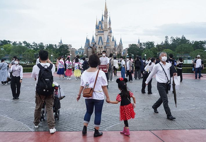 新型コロナウイルスの影響による休業から約4カ月ぶりに営業を再開した東京ディズニーランド=2020年7月1日、千葉県浦安市