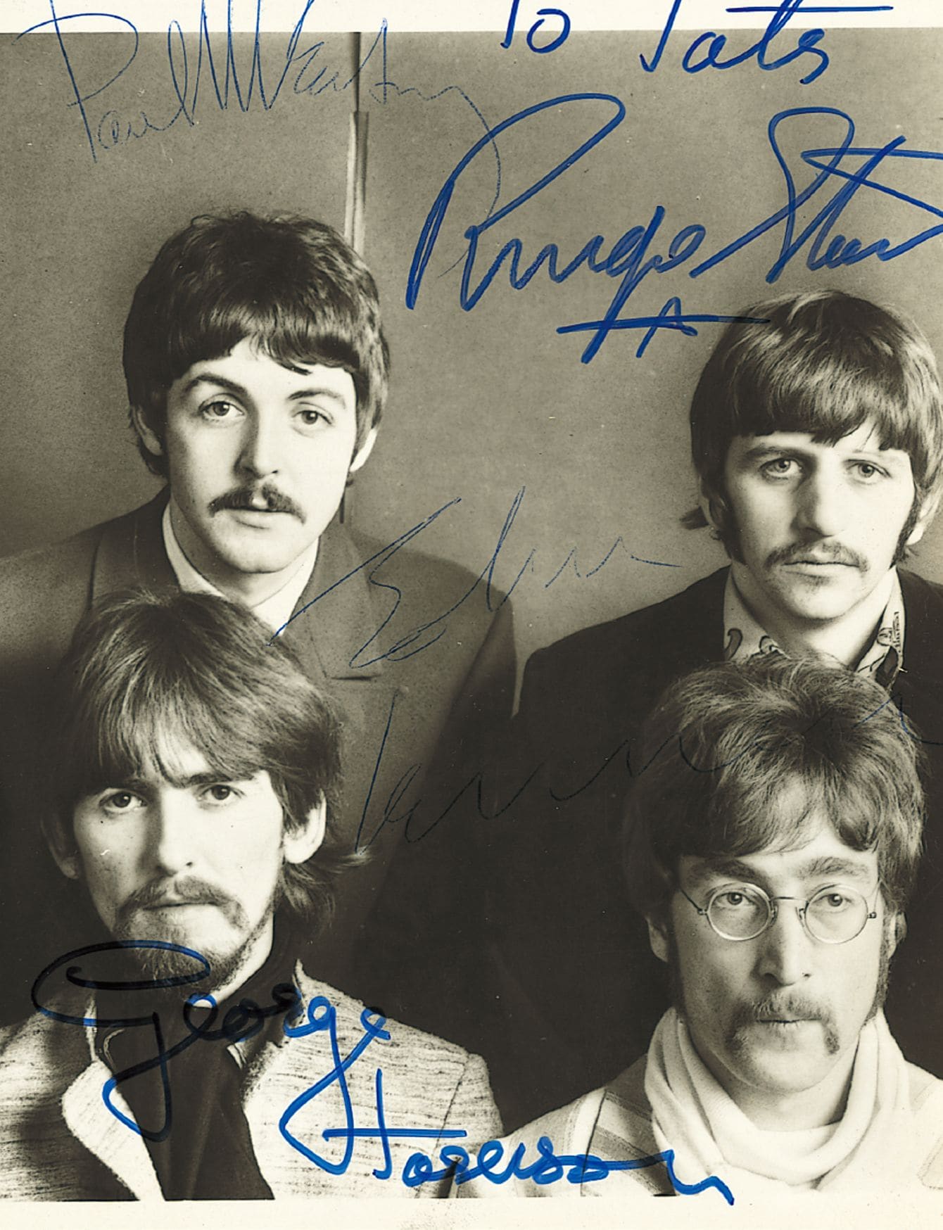 ビートルズのメンバー。右上:リンゴ・スター、右下:ジョン・レノン、左上:ポール・マッカートニー、左下:ジョージ・ハリスン