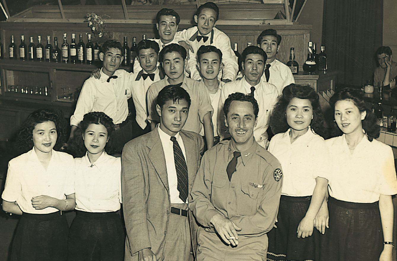 埼玉県入間郡にあったアメリカ軍ジョンソン空軍基地での一枚。将校クラブ支配人だった永島はまるで俳優のようだと評された。