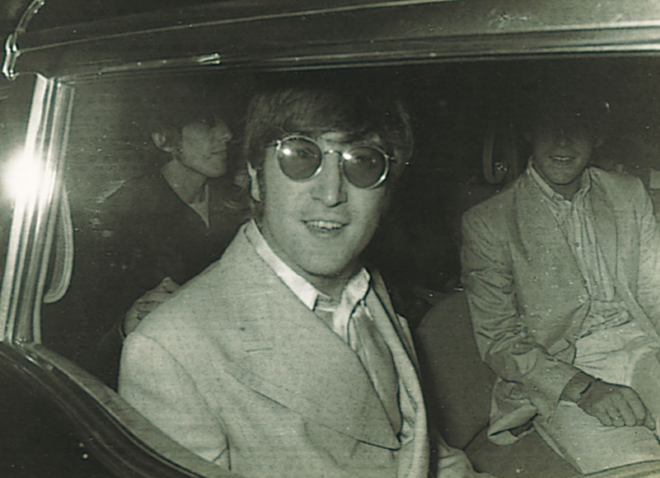 厳戒態勢の中羽田空港からヒルトンホテルへ向かうビートルズの4人。彼らが乗ったキャデラックリムジンはこの日のため購入された。