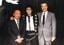 スーパースターの頂点を極めたマイケル・ジャクソンと。彼の来日は当時奇跡と言われた。左は元キョードー東京会長の嵐田三郎氏。