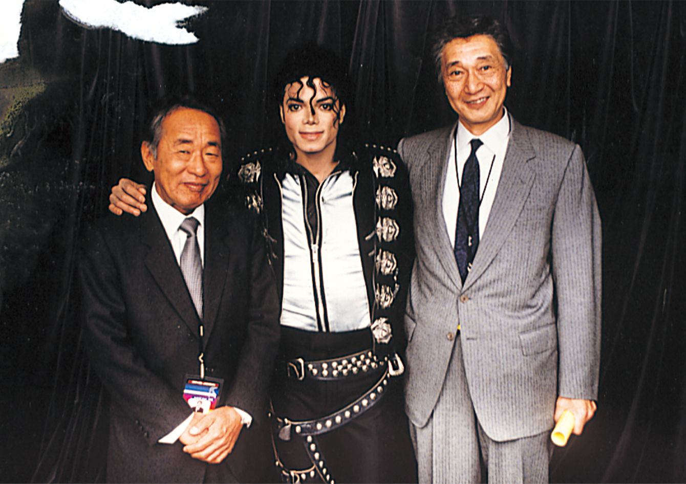 スーパースターの頂点を極めたマイケル・ジャクソンと。彼の来日は当時奇跡と言われた。左は元キョードー東京会長の嵐田三郎氏。