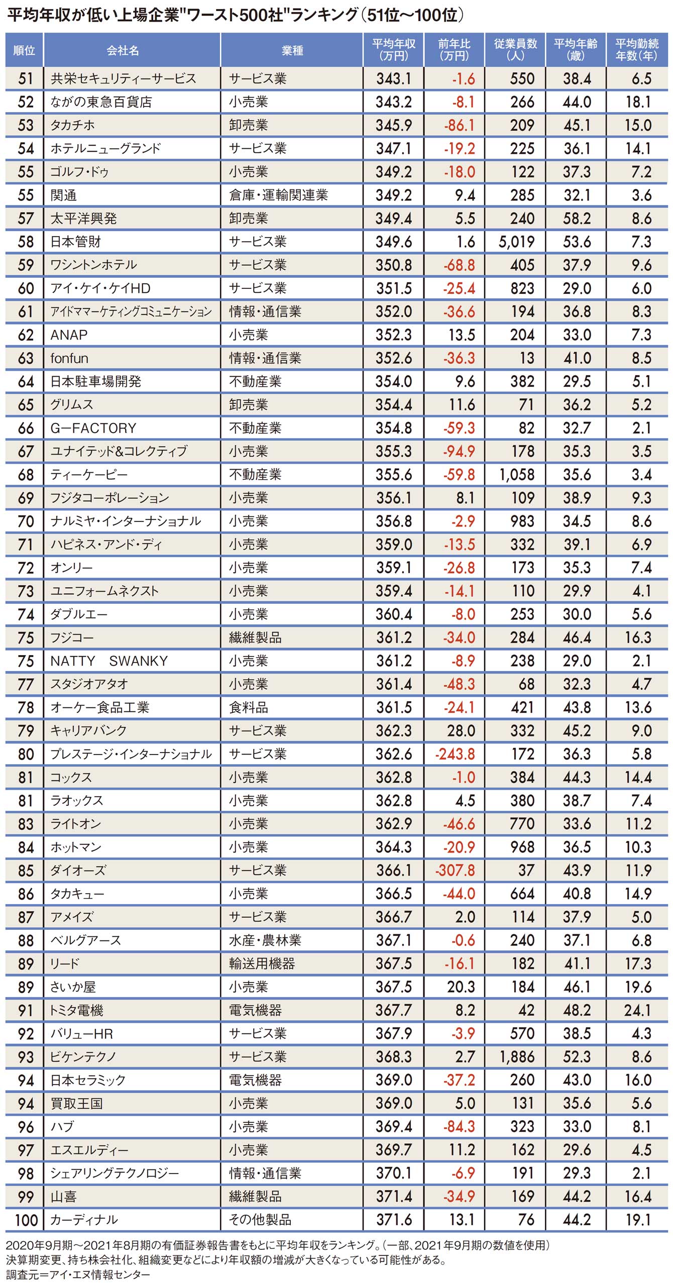 「1位はスーパー3社の持株会社で200万円」平均年収が低いワースト500社ランキング2021