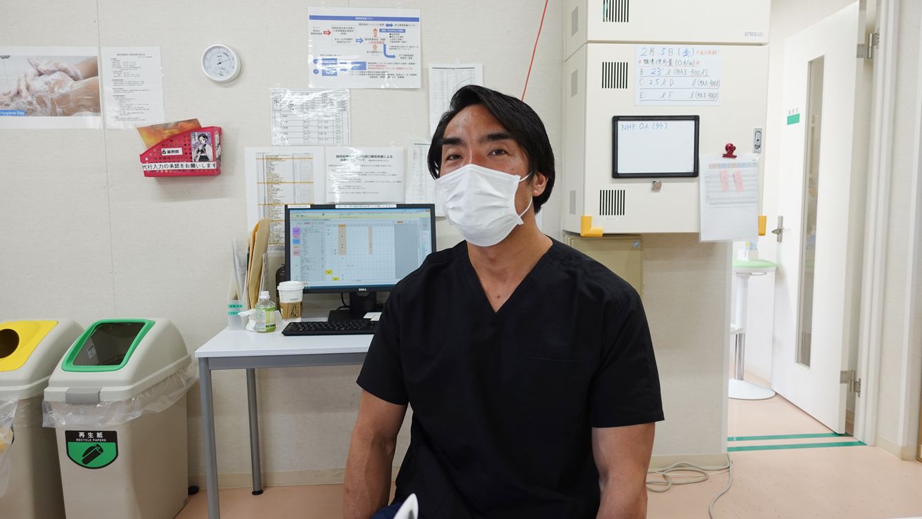 湘南鎌倉総合病院の會田悦久医師。インタビューの様子は