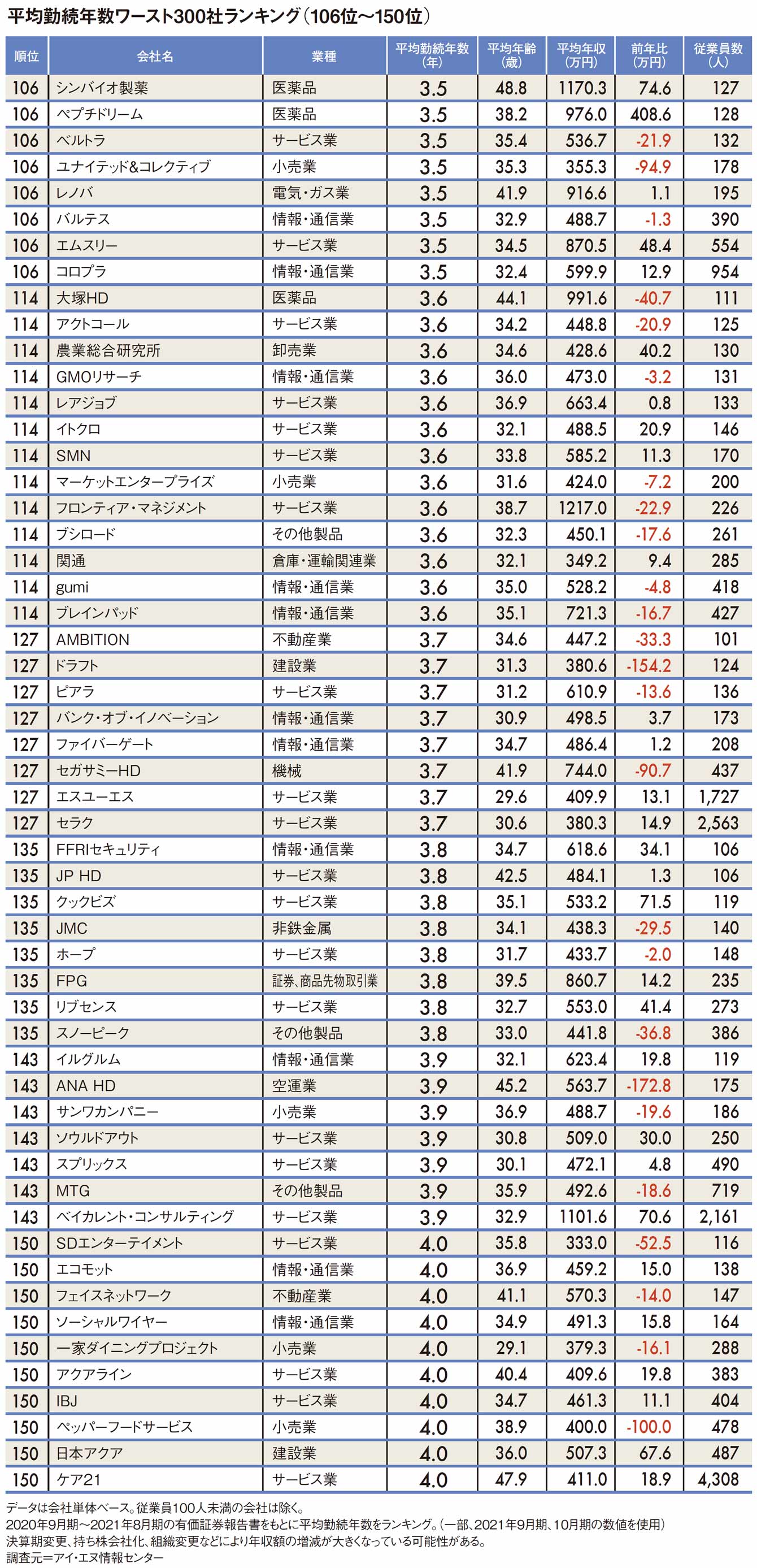 「最短は電子書籍配信会社の1.3年」平均勤続年数ワースト300社ランキング2021