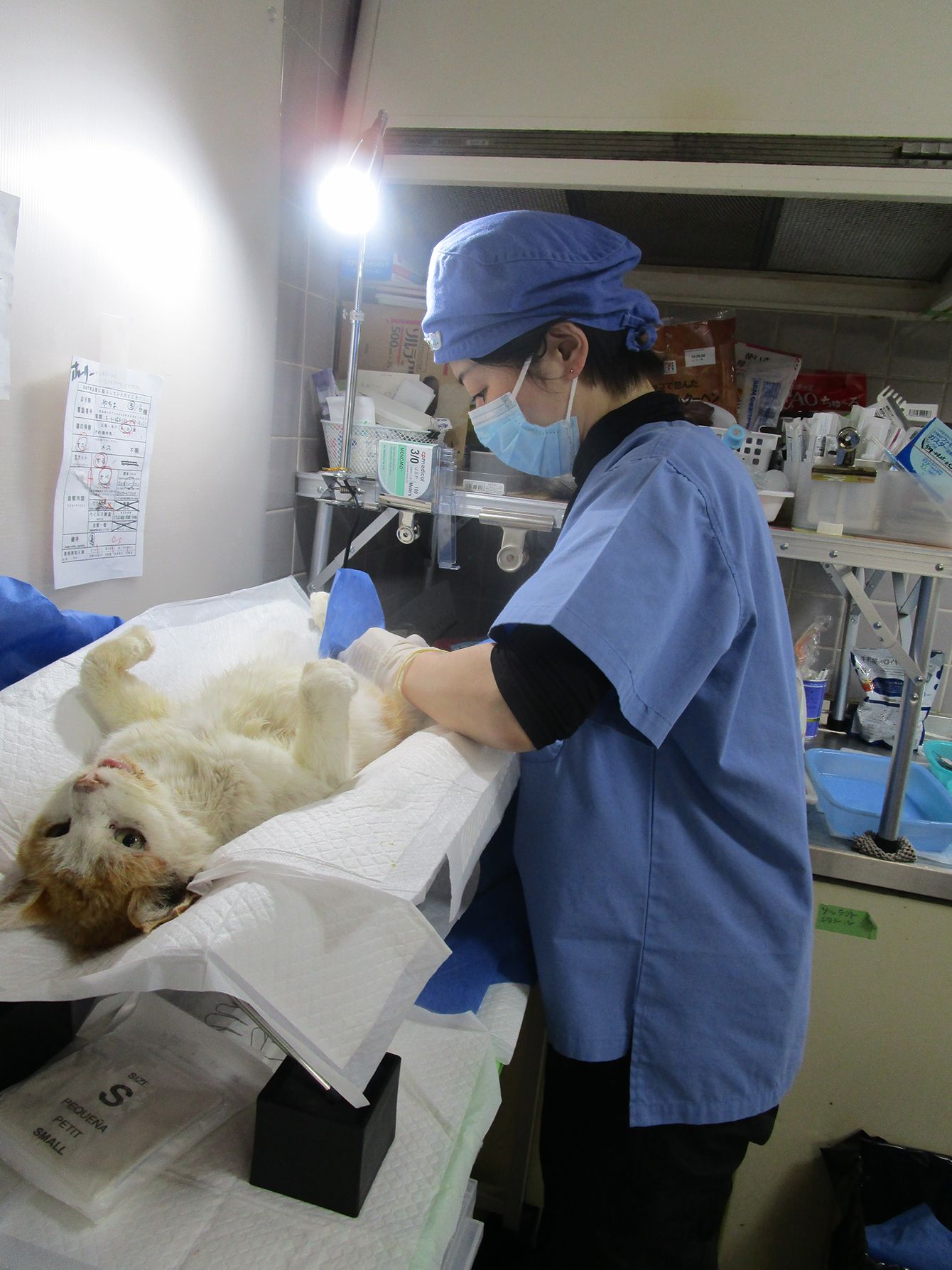 手術前に毛を剃るボランティア(撮影=笹井恵里子)