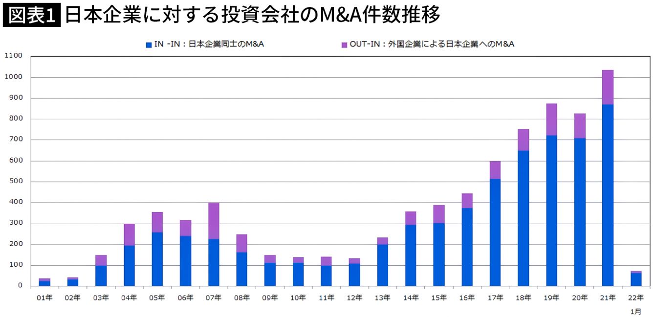 MARR Online「日本企業に対する投資会社のM&A件数推移」