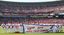 セ・リーグ優勝報告会で、チャンピオンフラッグを手にファンと記念撮影する広島の選手ら=2016年11月5日、マツダスタジアム