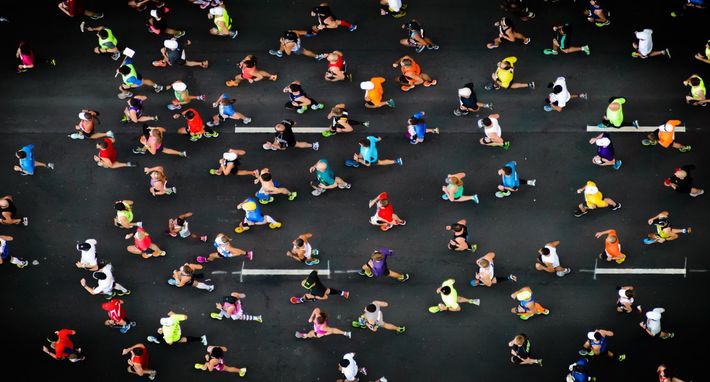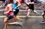 浅草寺の雷門前を通過するエリウド・キプチョゲ(右から3人目、ケニア)ら=2022年3月6日、東京都台東区[代表撮影]