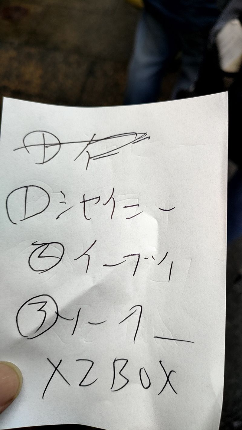 転売ヤーのフジモトから渡された商品のメモ(筆者撮影)