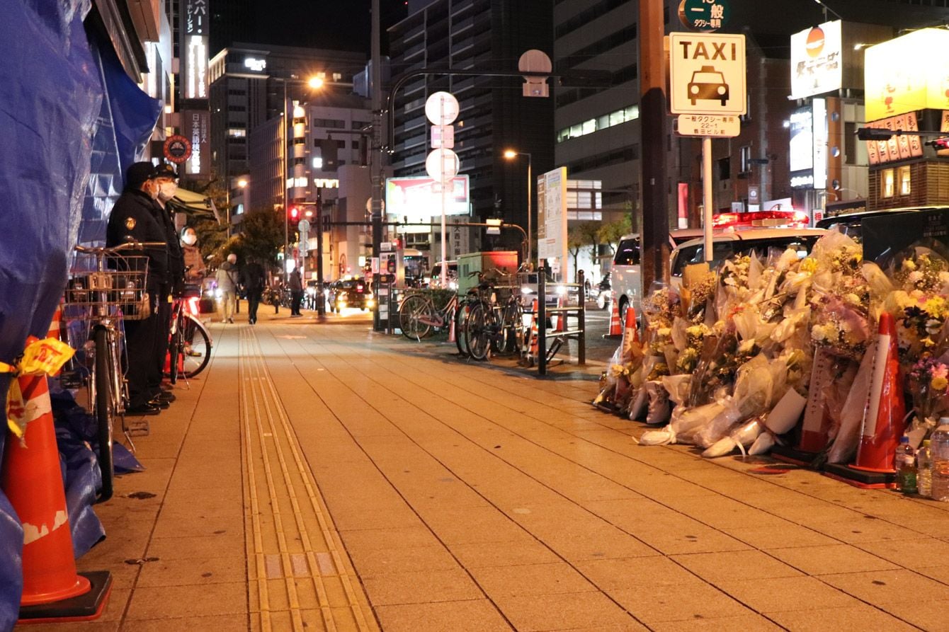 放火殺人事件が起きたビルの周辺=2021年12月30日午後、大阪市北区