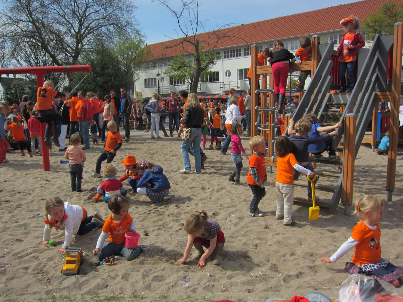 オレンジ色の服を着る子どもたち。2013年4月30日撮影