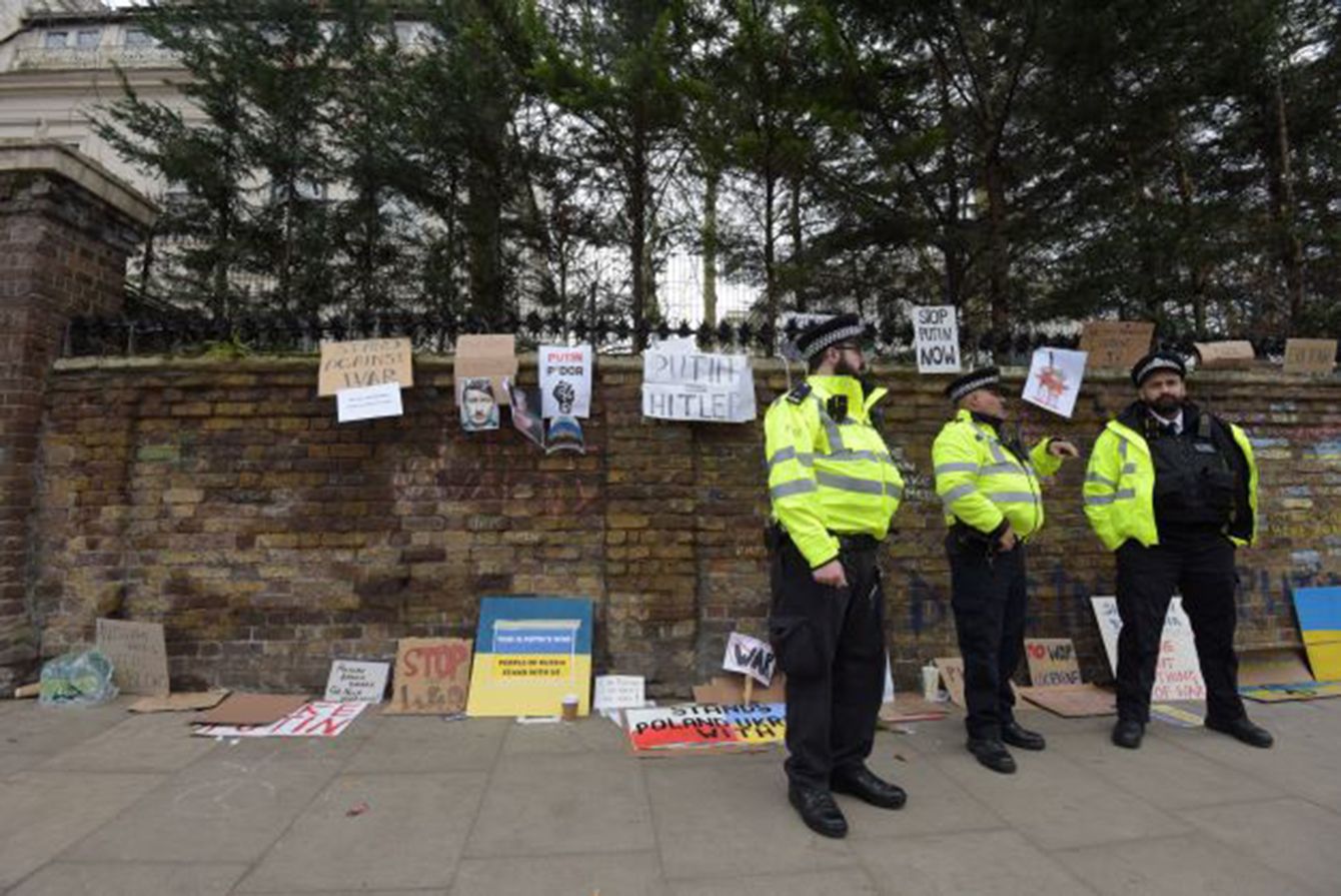 警察官も今や反ロシアに。ロシア大使館の壁に落書きしようが、卵をぶつけようが「見て見ぬふり」をすることも