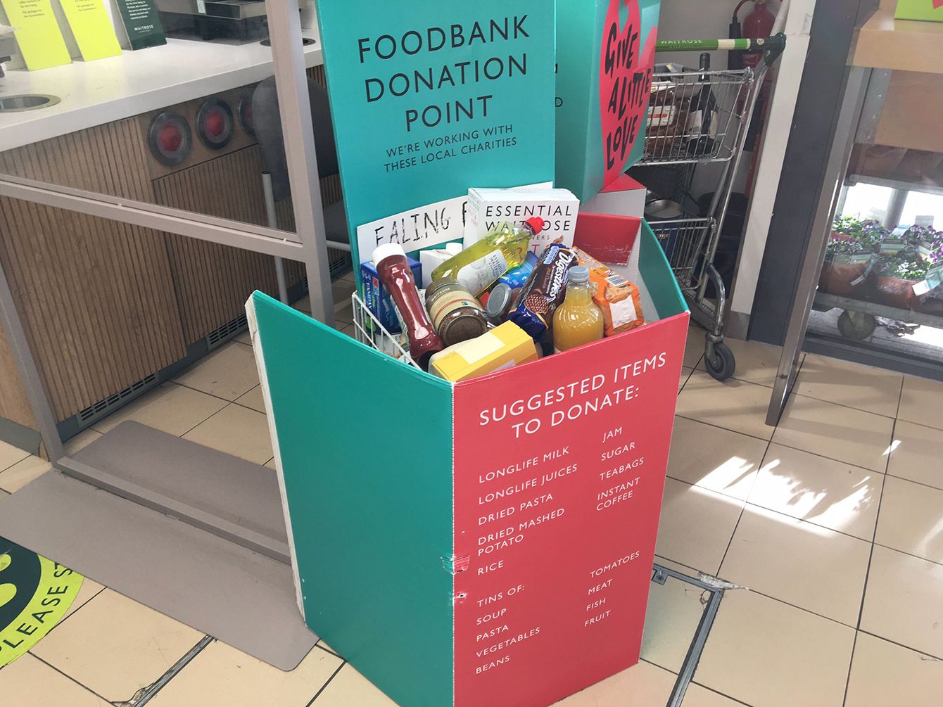 食べるに困った人々への食料品や雑貨は、市民有志が新品を買い、スーパーなどに置かれた所定のカゴに預ける仕組み