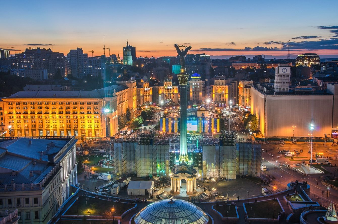 キエフの独立広場(マイダン広場)。夜には大勢の人が集まっていた
