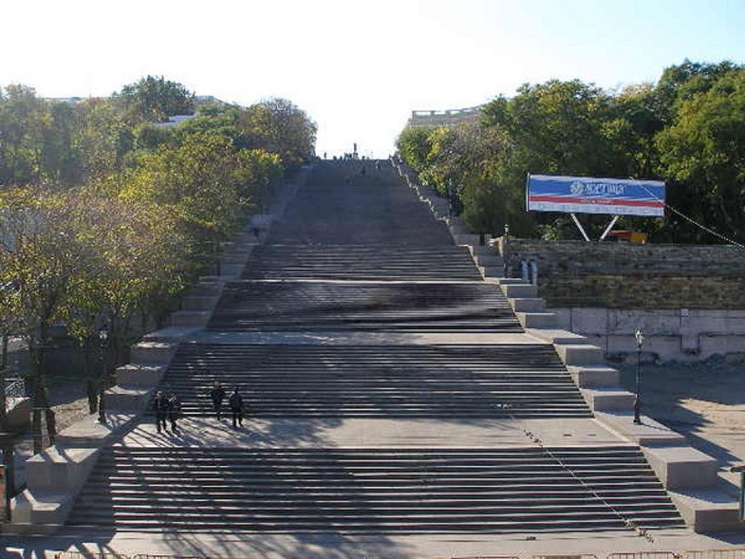 ポチョムキンの階段。階段の上から眺めると黒海が間近に見える
