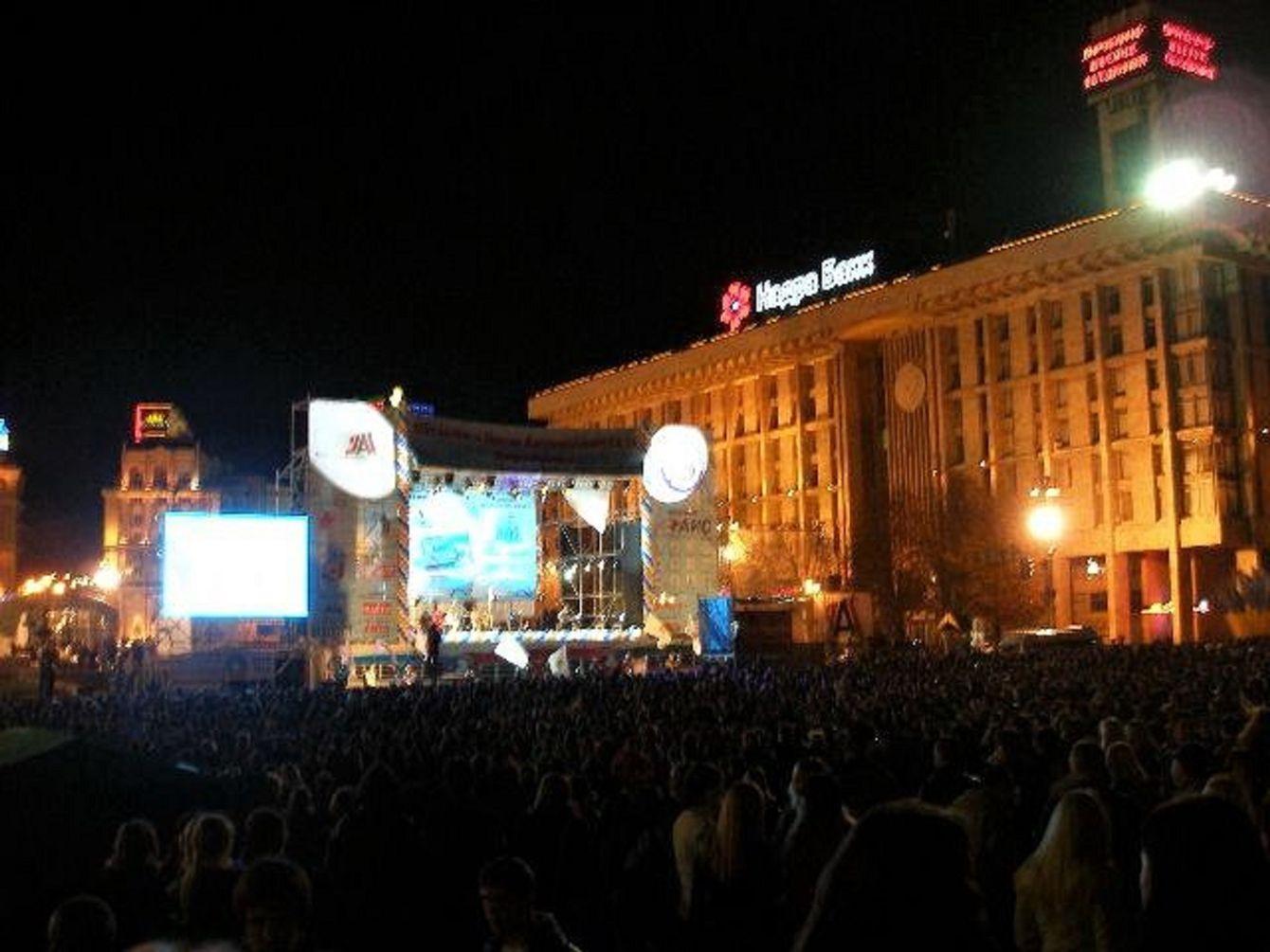 キエフの独立広場(マイダン広場)。夜には大勢の人が集まっていた